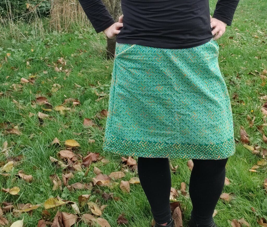 Cette fois-ci j’ai choisi de coudre toujours la version A de la jupe 1001 perles de chez Ivanne Soufflet mais dans un tissu Wax qui m’a été offert il y a quelques années déjà par une amie qui revenait d’Afrique.