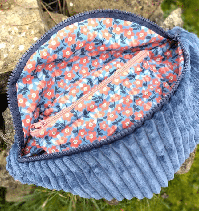 Toujours la même modification : j’ai mis une double poche (un côté avec un zip , un autre tout simple).