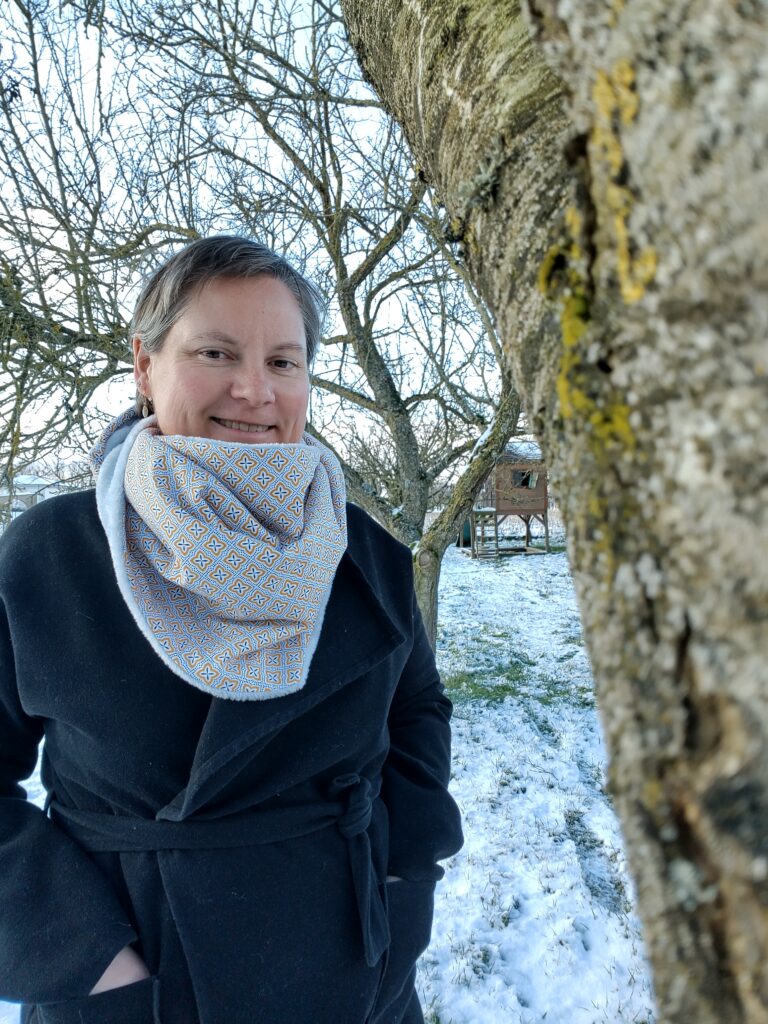 Vous vous souvenez sûrement de ce chèche là mais avec les températures qui ont chuté, j’en voulais un plus chaud. J’en ai donc cousu un deuxième avec un côté en coton et un autre en minky. Testé et approuvé ces derniers jours !