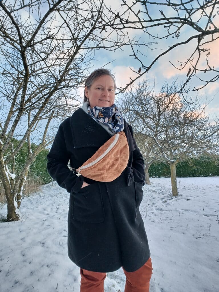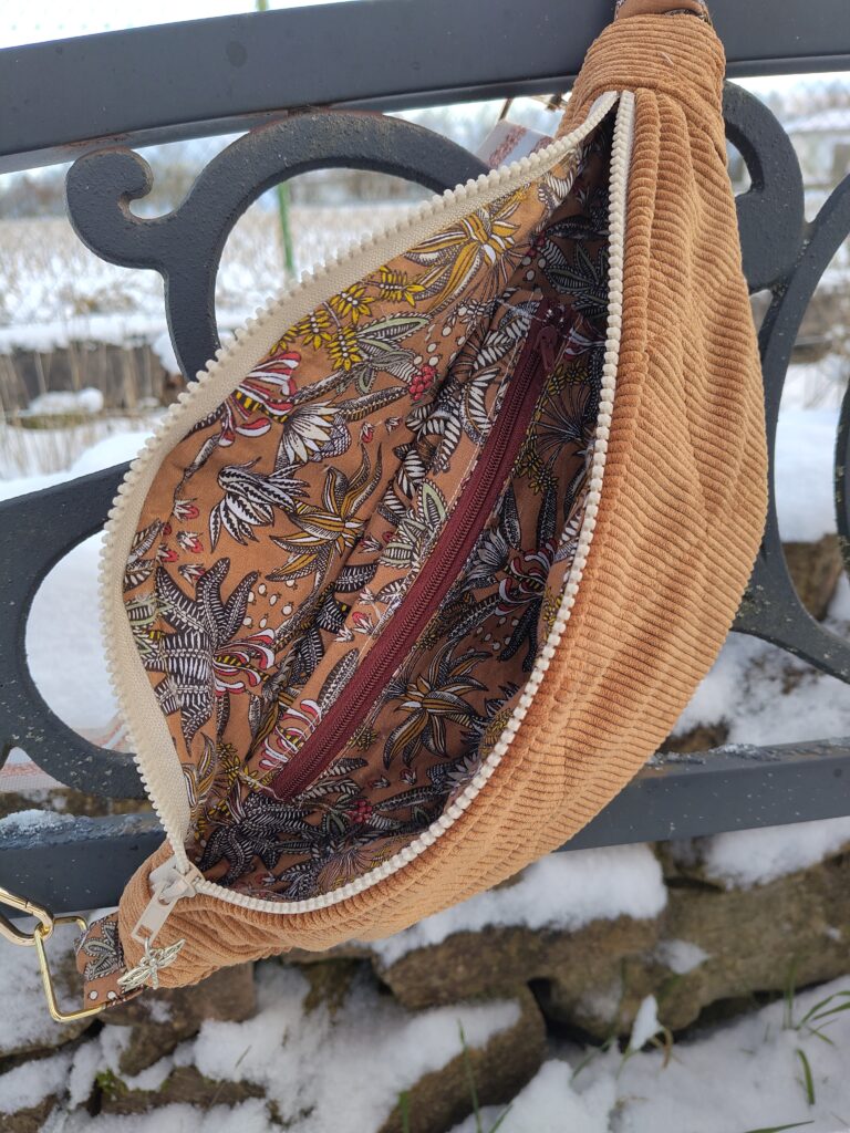 J’ai choisi le patron gratuit de Mercerine. Je l’ai trouvé très bien fait. Le pas à pas est bien détaillé et je n’ai pas rencontré de difficulté. J’ai juste agrandi la poche pour y glisser un portable et ajouter un zip.