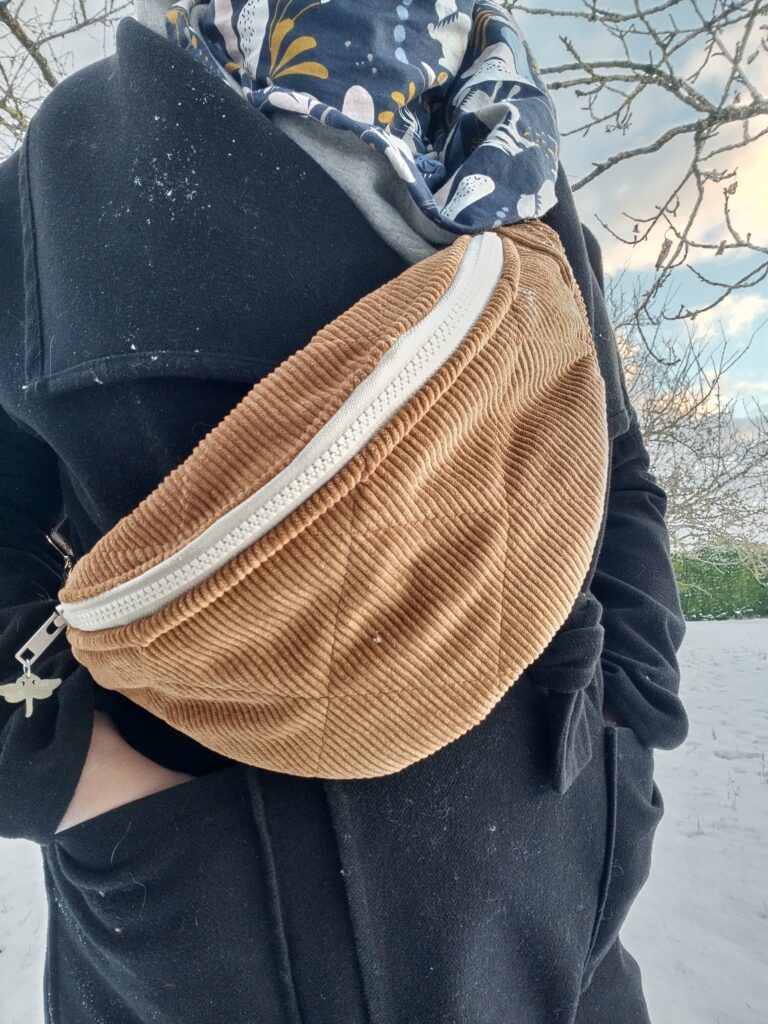 Je travaille avec une super collègue AESH et pour noël, je lui ai cousu un sac banane ! Je lui ai offert à la rentrée et elle la adorée ! Je suis très contente !